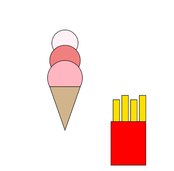 The next activity was to use some shapes such as circles, triangles, and squares to draw an ice cream and an object. I drew an ice cream and a French fry.
